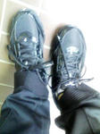 まえに履いてたそれまたダッサイシューズは靴ぞこがはがれてベッコベコになってしまったので買い換えたのです。外見はともかくなかなか履きやすくて気に入ってたのですが。